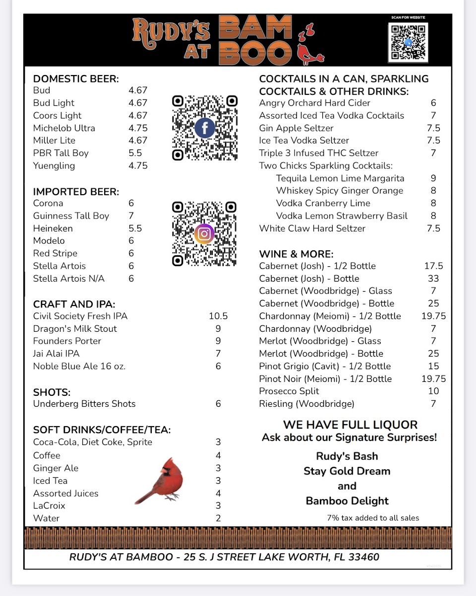 Welcome to Rudy's Pub in Lake Worth & Bamboo Room, a vibrant culinary haven in Lake Worth Beach, FL. This charming pub offers a rich menu where comfort food meets creative flair.